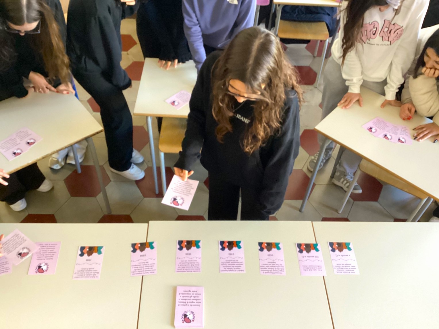 Una volta distribuiti i personaggi, ogni ragazzo ha un po’ di tempo per leggere la scheda, capire e fare eventuali domande, oltre a riconoscere chi sono i compagni che interpretano personaggi che sono in relazione con lui (se due personaggi, per esempio, sono amici di vecchia data, i due ragazzi che li interpretano possono parlare brevemente tra loro di questo rapporto).