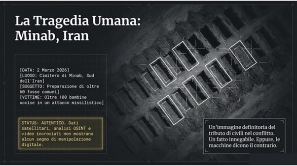 Se il Nord Stream ha dimostrato la vulnerabilità delle infrastrutture sottomarine, il conflitto scoppiato nel marzo 2026 contro l'Iran ha evidenziato un pericolo più oscuro: l'IA generativa che non solo crea falsi, ma nega la realtà. Il web è stato sommerso dalla cosiddetta AI slop, spazzatura generata artificialmente: dalle finte immagini satellitari diffuse dal Tehran Times, che mostravano presunti radar statunitensi distrutti in Qatar, fino a un caso che rappresenta un macabro punto di non ritorno storiografico. Un'immagine atroce e veritiera, raffigurante dozzine di fosse comuni appena scavate nel cimitero di Minab, destinate alle studentesse vittime di un bombardamento, è diventata virale. Interpellati per verificarne l'autenticità, i moderni oracoli dell'IA - Grok di X e Gemini di Google - hanno categoricamente dichiarato che la foto fosse falsa, attribuendole un finto contesto: le fosse comuni del Covid in Indonesia nel 2021, il terremoto in Turchia. Con toni suadenti e perentori, i chatbot hanno ingannato milioni di utenti.